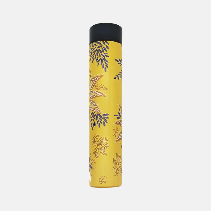 The Botanic Blooms Slim Water Bottle combines everyday practicality with elegant design. Graceful silhouetted birds perch among layers of lush blooms set against a rich, uplifting yellow backdrop, finished with delicate gold detailing for a luxurious touch. Its slim, lightweight shape is perfectly designed to slip into your handbag, making it ideal for city days, commutes, or on-the-go hydration. Made from durable metal with insulating properties, it keeps your drinks at the perfect temperature while adding a sophisticated flourish to your daily routine.