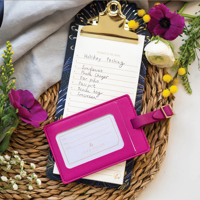 Travel in style with the Elegant Bird Luggage Tag, where practical design meets striking elegance. Set against a vibrant fuchsia backdrop, an exquisite bird perches gracefully among delicate, feathery fronds, accented with shimmering gold detailing for a refined finish. Thoughtfully designed with space to add your name, email and phone number, it ensures peace of mind while adding a touch of glamour to your suitcase. A chic finishing touch for any journey and a beautiful gift for travel lovers.